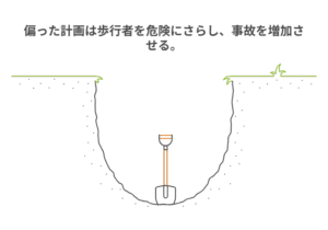 実際、この方針により歩行者の転倒事故が急増し、医療費の増大という形で、市は予期せぬ社会的コストを支払うことになったのです。もし意思決定の場に、異なる移動手段を使う人々の視点があれば、このような事態は防げたはずです。