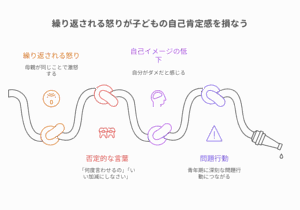 母親が何度も同じことで激怒し、「何度言わせるの」「いい加減にしなさい」と繰り返すことで、子どもは「何度言ってもダメな自分」という否定的な自己イメージを内面化してしまいます。この事例では、子どもの自己肯定感が著しく低下し、青年期に深刻な問題行動につながったケースが報告されています。