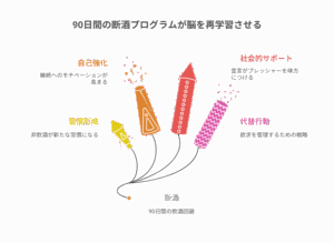 脳は飲酒欲求で強く抵抗しますが、90日間の継続断酒で「非飲酒」を新たな習慣として学習させることができます。以下の3つの柱で取り組みましょう。
