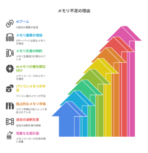 関連キーワード:パソコン 価格高騰 2025 / メモリ不足 原因 / DDR5 値上げ / AI サーバー メモリ / パソコン 買い時 / クルーシャル 撤退