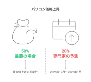 - 📅 2025年12月〜2026年1月:パソコンが15〜20%値上げの可能性