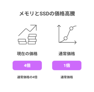 - 📈 メモリとSSDの価格が約4倍に高騰している